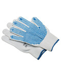 • 13 gauge white knitted Nylon gloves with blue PVC dots on palm & fingers